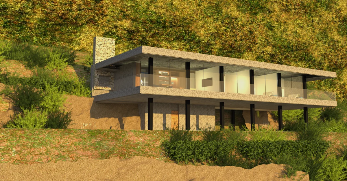Uma verdadeira ode ao vidro, ao cimento e ao ferro, onde a estrutura se eleva para alcançar os pontos mais altos do terreno. As grandes aberturas de luz dissolvem os limites entre interior e exterior, criando uma experiência habitacional onde a paisagem se torna parte da casa.